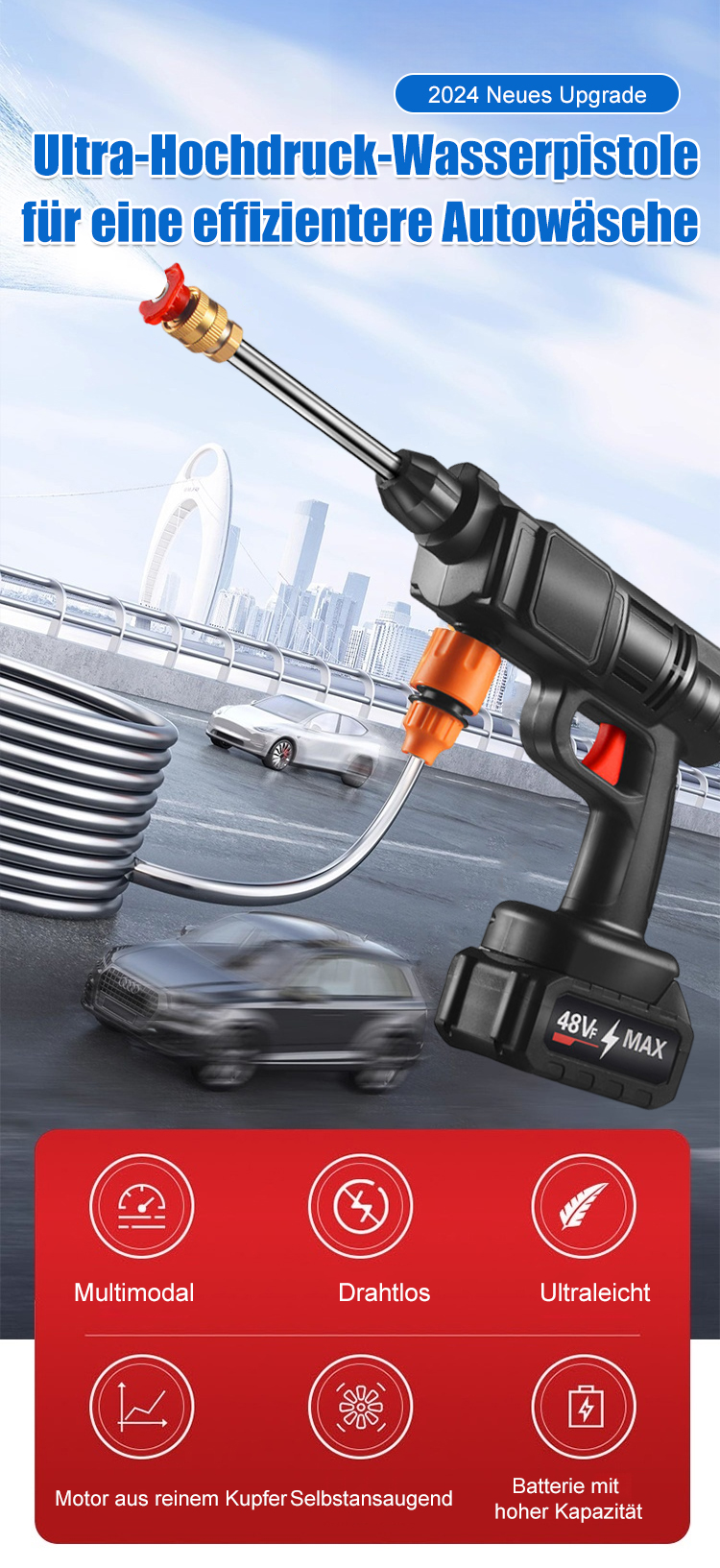 【Multifunktionale Hochdruck-Wasserpistole】💦 Auto waschen, Blumen gießen, Scheiben putzen