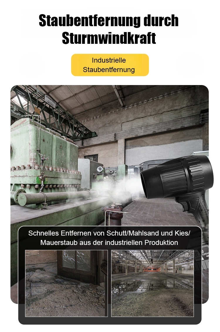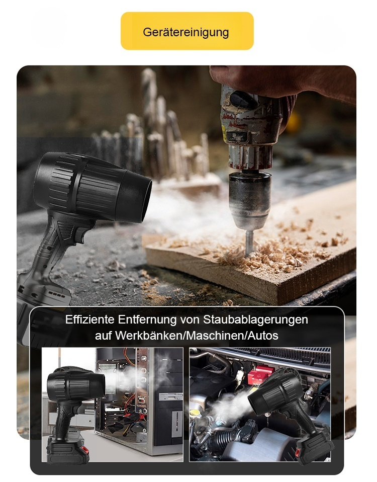 Hochleistungsgebläse, Reinigung von Gartenblättern und Garagenstaub mit einem Klick