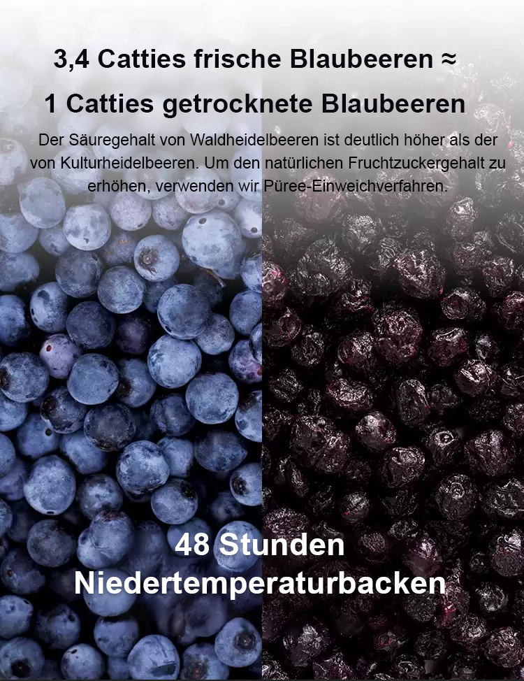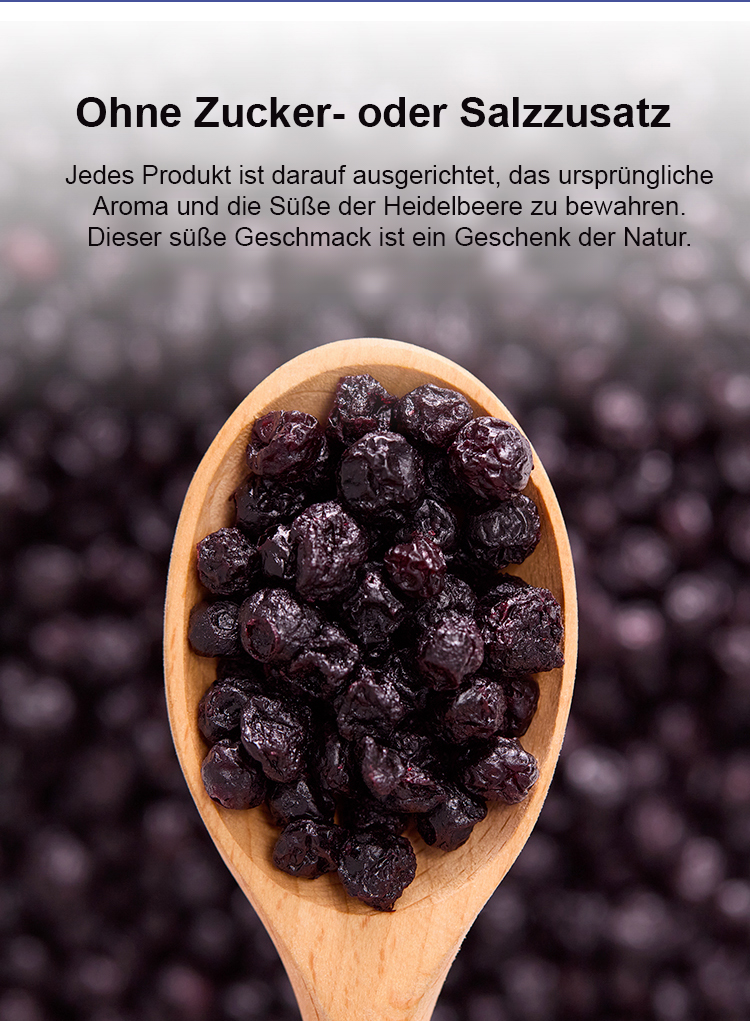 Diese Premium-getrocknete Blaubeere ist reich an Anthocyanen und vor allem zuckerfrei.💚
