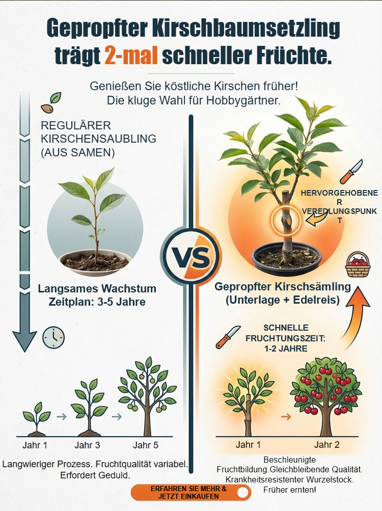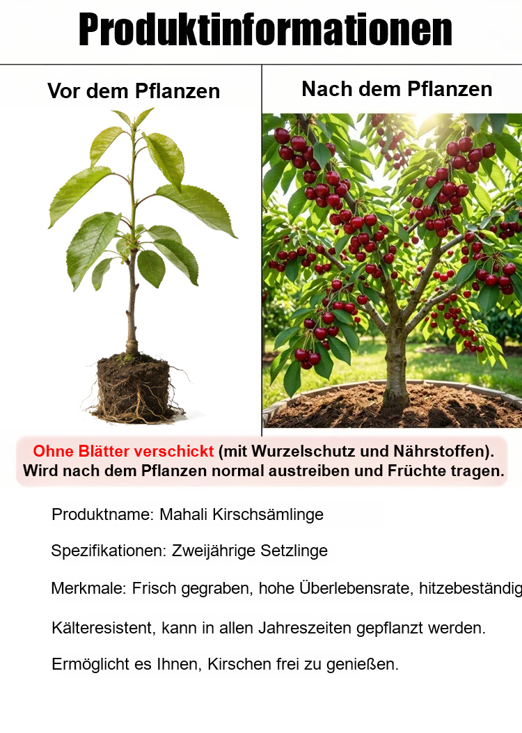🍒Frisch geerntete, veredelte Kirschbaumsetzlinge✨ Hohe Anwachsrate, veredelt mit Erdballen, erstklassige Sorte, frühfruchtend